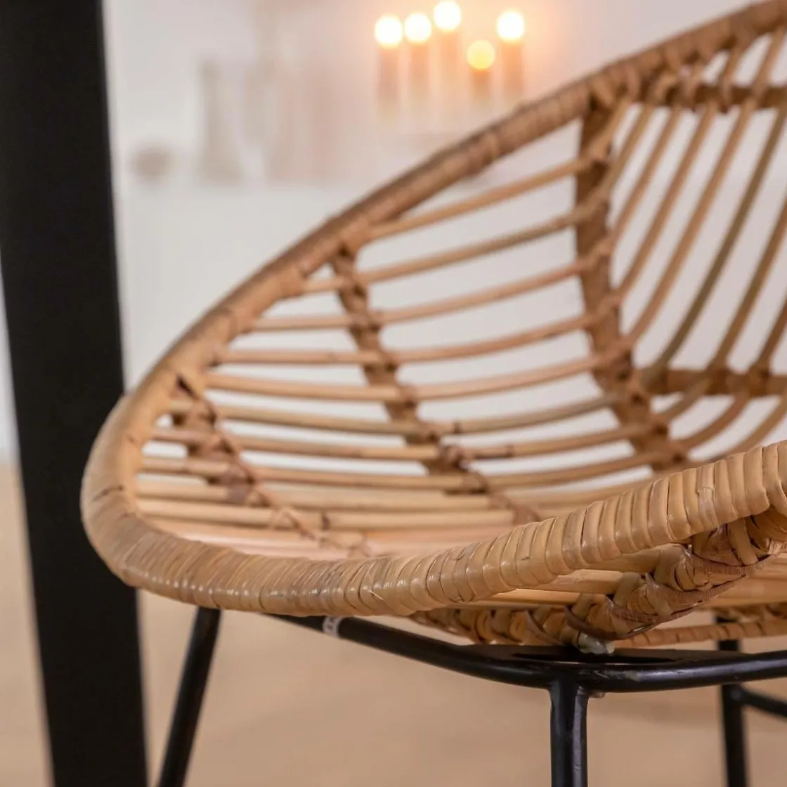 Le tabouret de bar Calvi, chic et élégant, fera sensation dans votre intérieur. Cet article luxueux ne manquera pas de se démarquer avec sa structure en métal noir, son assise ronde en rotin et son design captivant de style bohème.