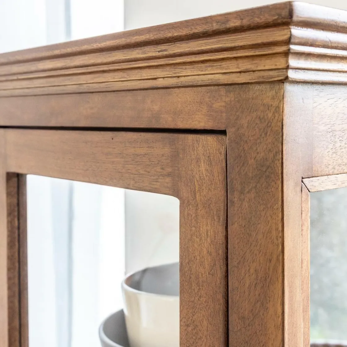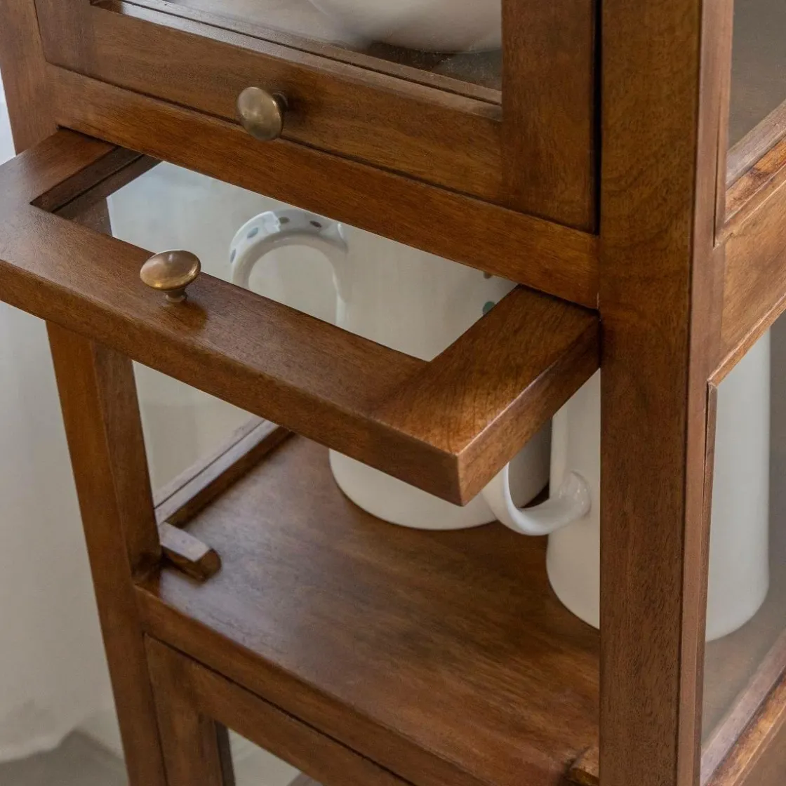 Avec sa silhouette élancée et sa façade composée de cinq portes vitrées, cette colonne Remick de rangement en bois de manguier joue la carte de l’élégance naturelle et de la légèreté visuelle. Chaque porte révèle un compartiment indépendant, idéal pour exposer de beaux objets, ranger de la vaisselle ou structurer des accessoires du quotidien avec style. Entièrement réalisée en bois massif, elle séduit par la noblesse de son veinage et la chaleur de son aspect brut.